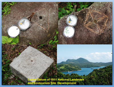 **Geographic Cenetr of the Philippines: Sometime during the 1906, the United States Coast and Geodetic Survey (USCGS) now National Oceanic and Atmospheric Administration (NOAA), established a geodetic marker drilled in a cubic meter of diorite rock on a mountaintop located at the boundaries of Brgy. Argao, Hinanggayon and Silangan, Mogpog, 13�33'41"N, 121�52'3"E. This is the Luzon Datum of 1911, a very important geodetic point marker which is used as point number one for all map makers in the country. The area where the Luzon Datum of 1911 lies is attracting visitors who probably hardly know the significance of that area near Balanacan & Argao. An eco-tourism park will be developed there in cooperation with the barangay residents and provincial tourism officials of Marinduque. Hopefully, the provincial road leading to this site is widened and paved, so that tourists will be attracted to visit this park.